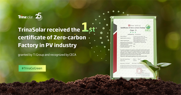 In April 2023, Trina Solar's Yiwu plant became the first in the PV industry to be officially certified as a Zero Carbon Factory. In addition to reflecting the company's carbon reduction practices in technology, products, equipment, and process management over the past quarter century, this demonstrates Trina Solar's strong commitment to sustainable development.