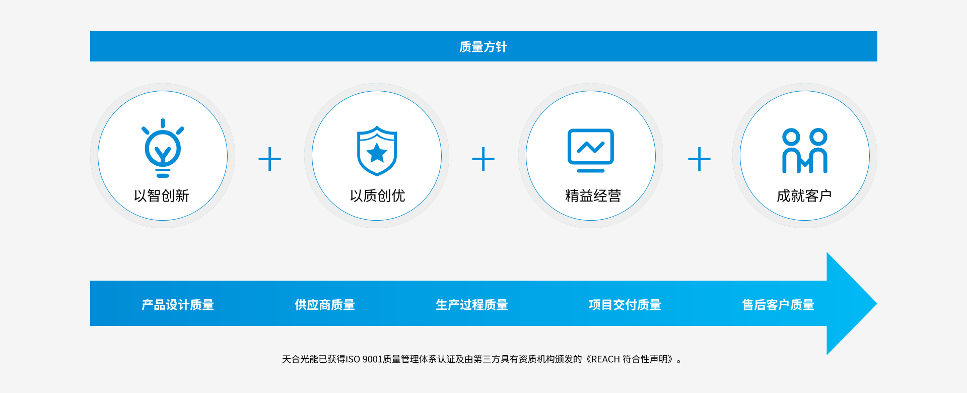 天合光能致力于营造全员参与的质量文化氛围,提高全体员工对产品品质的重视。除鼓励各生产基地开展质量文化宣贯活动外,2023 年,公司建立质量人员资质认证管理流程,搭建质量职能与质量资质能力要求矩阵,对不同岗位的员工提出相应的质量资质要求。我们针对不同层级和职能模块,从质量职能、质量工具、质量体系等维度,开设逐步深入的系列课程,要求员工学习自身职能范围内的课程,并鼓励员工深入探索,持续提高全员品质文化意识与能力。
