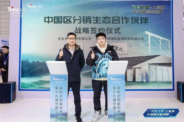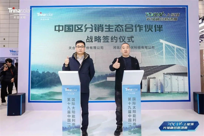 本次展会上天合光能中国区分销华北区域负责人王超、浙江特区负责人邵智华、华东区域负责人许成巧分别与8家客户共同完成2024天合光能中国区分销储能生态合作伙伴战略签约。天合光能将与各位战略合作伙伴,充分发挥各方面优势,进一步深化储能项目建设、技术创新合作层次、加强交流沟通、拓展合作空间,共同开创更多领域高质量合作的新局面。