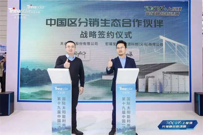 在今年的1月12日,天合光能发布了一个地球自然基金会“清洁能源多一小时”推广活动共创计划,本次展会现场天合光能中国区分销总经理王建龙为6家生态合作伙伴颁发由100%废塑料再生板材制作的“碳中和光伏推广者”奖杯。作为行业领军企业,天合光能将与各界同仁携手合作,拥抱绿色转型大时代,为实现碳中和的美好愿景而共同努力!