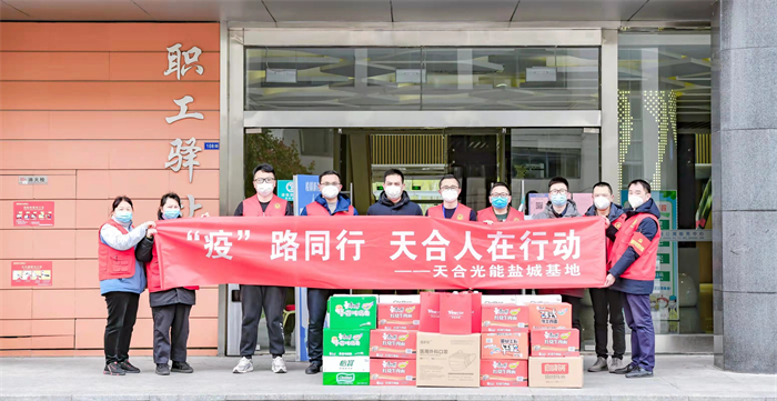 一场疫情,一次考验,危急关头,有人白衣执甲,逆行出征,有人闻令即动,勇挑重担;病毒无情,但人间有爱。3月22日,在盐城市阻击疫情的关键时期,天合光能盐城党支部积极发挥政治引领作用,党员李根、预备党员赵洋城、施海洋等带着5名党员先锋队员先后来到盐城经济技术开发区公安局、新嘉源工业邻里中心、高速出入口、光电园卡口等地,向坚守在疫情防控一线的政府工作人员捐赠价值2万余元的医用防护口罩、医用酒精、消毒液、泡面、矿泉水等防疫和生活物资,用实际行动支援抗疫,做好保障。在这个特殊的时期,天合光能盐城党支部主动担当作为,力所能及共同参与这场没有硝烟的战斗,以实际行动履行社会责任,用爱心和奉献筑起“防疫长城”,传递“天合温度”,让党旗在疫情防控一线高高飘扬。