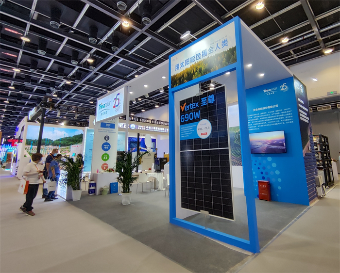 作为光伏行业龙头企业,天合光能也在服贸会这个全球贸易平台中展示着企业的“全球化”战略及创新驱动发展成就,展会期间,吸引着中国石化等一众大型参展企业前来洽谈。近年来天合光能积极引进来自30多个国家和地区的国际化高层次管理和研发人才。公司在瑞士苏黎世、美国费利蒙(硅谷)、美国迈阿密、日本东京、新加坡、阿联酋迪拜设立了区域总部,并在马德里、墨西哥、悉尼、罗马等地设立了办事处和分公司,在泰国、越南建立生产制造基地,业务遍布全球150多个国家和地区。截至目前,天合光能业务光伏组件全球累计出货量超100GW,生产清洁能源电力超1350亿度,相当于4.4个三峡水电站的装机量,约等于在全球种了74亿棵树。天合光能致力于成为全球光伏智慧能源解决方案的领导者,助力新型电力系统变革,创建美好零碳新世界。公司成立25年来,天合光能坚持以创新引领作为第一发展战略和核心驱动力量,在光伏电池转换效率和组件输出功率方面25次创造和刷新世界纪录,持续推动行业技术进步,并用一连串“第一”引领光伏创新发展。截至目前,天合光能发明专利拥有量居光伏行业第一,并荣获中国光伏技术领域首个工业大奖和首个国家技术发明奖。