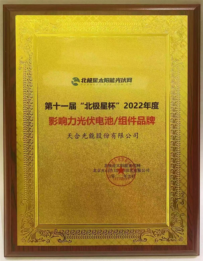 此次天合光能荣获北极星杯三项大奖,又一次证明了天合光能拥有过硬的产品质量、良好的品牌口碑以及强大的技术实力。以天合光能210至尊超高功率组件产品为例,该组件具备高功率、高效率、高发电量及高可靠性的核心优势,最终导向光伏电站更低度电成本,“四高一低”赋能行业可持续高质量发展,带来了整体电站的系统集成成本下降,为客户提升更多价值。天合储能拥有领先的光储融合解决方案,垂直一体化产业链汇聚了磷酸铁锂电池、储能模块、系统集成及综合智慧能源管理,产品涵盖了储能系统、储能电池和智慧管理领域。