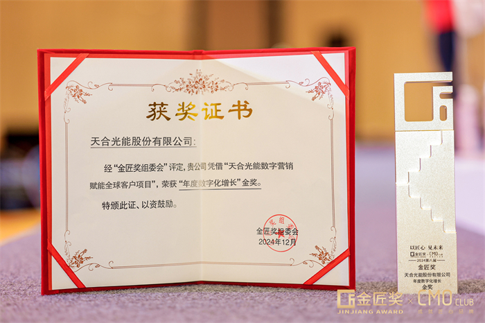 随着双碳目标的加速演进,数字化赋能已成为推动光储深度融合、源网荷储协同互动、催生新质生产力的关键力量。近日,天合光能数字营销赋能全球客户项目荣获第八届金匠奖“年度数字化增长”金奖。此次荣膺桂冠,是对天合光能在数字营销领域深耕细作、持续创新的最好证明。