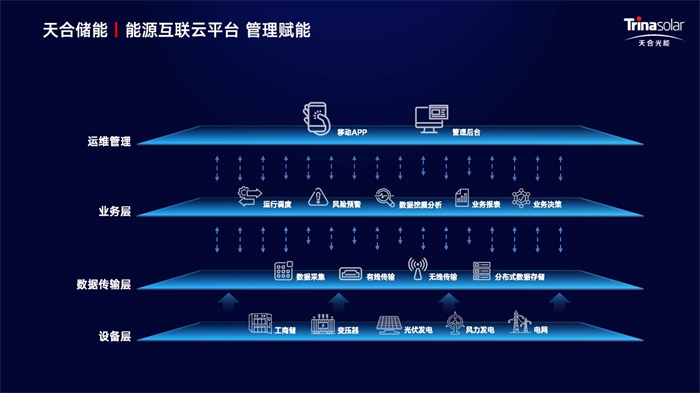 展望台区配储未来,提前投资布局分布式光储将成为绿电消纳主流趋势。天合光能分布式储能一体机Potentia蓝海全面接入天合智慧云平台,支持EMS&BMS秒级快速响应模式,通过四层架构打通储能全生命周期,全面升级数字化管理与数字化服务。拥抱AI技术加码智储,做到能量流动可观、数据分析精准、运行调度灵活,前置打造虚拟电厂、绿证交易等收益获取基石,优化用户投资回报负担,赋予天合“储能+”用户真正高收益价值。