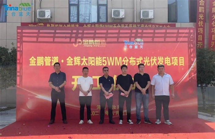 天合蓝天是中国分布式光伏领军品牌,以原装标准为基础,建立严苛的质量管理体系,配备专业的技术团队、强大的金融支持及完善的培训赋能体系。并通过系统化经营管理、标准化原装体系护航、全天候远程监控运维,形成全流程质控的闭环。金鹏管道有限公司董事长贾陆军一直以来对天合蓝天品牌及原装系统解决方案印象深刻,对天合蓝天原装产品质量及多种合作模式表示高度认可,在一期惠洁管业2.16MW天合蓝天原装工商业项目良好运行十个月的基础上,建设二期金鹏管道·金辉太阳能5MW天合蓝天原装工商业项目。