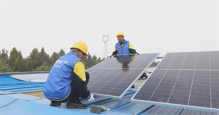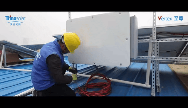 在此次项目的厂房屋顶上,天合光能2MW工商业项目仅在20余天内,便已全部安装完毕,装机规模达2MW。所有组件按照屋顶的走向,兼用横装和竖装的方式灵活排布,最大化屋顶利用。在实际的安装过程中,工人两人一组,将组件平稳快速地转运到支架位置,只需十几秒的时间,便可以成功安装好一块超高功率组件。