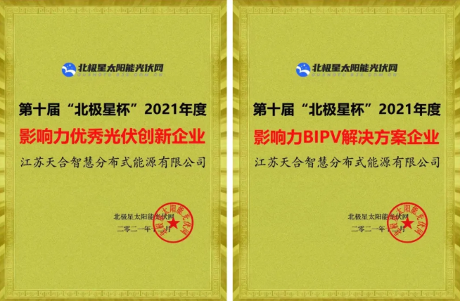 近日,以“光耀零碳·重塑能源”为主题的“2021年光伏新时代论坛”在江苏南京成功举办。江苏天合智慧分布式能源有限公司受邀参加此次论坛,并凭借在户用光伏和BIPV领域所做的卓越贡献,再获“年度影响优秀光伏创新企业”与“年度影响力BIPV解决方案企业”双料大奖,成为本次论坛焦点。