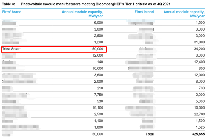 2021年第四季度BNEF第一梯队光伏组件排名来源:BloombergNEF