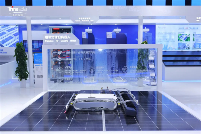 天策机器人全场景、多元化智能清扫产品矩阵焕新亮相,围绕客户需求定制化开发干挂式与履带式清扫机器人,以极智性能为客户灵活定制清扫运维策略,大幅缓解光伏电站清洁压力,在避免高频人工清洗组件的高额费用和安全隐患的同时,解决沙尘遮挡给整站发电量带来的损失问题,全天候保证组件清洁度处于最佳发电状态,让智能化产品惠及更多光伏用户。