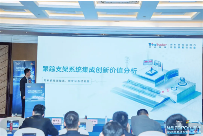 11月21日-24日,第二十届中国太阳级硅及光伏发电研讨会(20th CSPV)在中国深圳隆重举行。天合跟踪智控产品开发负责人廖格兵在“N型TOPCon时代 光储氢系统创新升级应用”分论坛上发表了《跟踪支架系统集成创新价值分析》主题演讲,从跟踪支架的的全新优化设计、N型组件与跟踪支架的系统集成优化设计、发电量模型LCOE测算优化、跟踪支架配合储能系统在调峰辅助侧的系统集成设计等方面进行系统集成创新价值分析,为赋能高质量电站发展提供技术及应用创新思路。