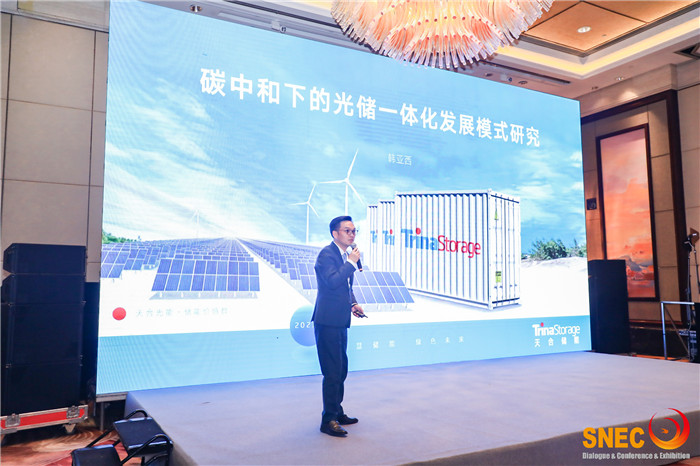 在第六届国际储能技术大会上,江苏天合储能有限公司总经理韩亚西以《碳中和下的光储一体化发展模式研究》为题探讨了光储结合热点。
