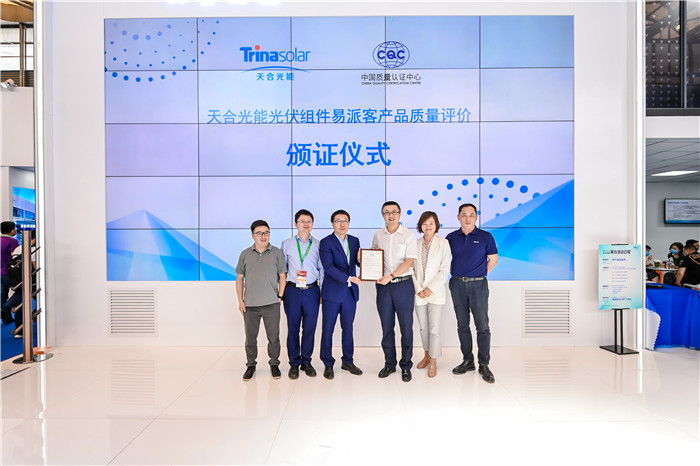 6月4日下午,天合光能展台重磅举办了天合光伏组件易派客产品质量评价颁证仪式。