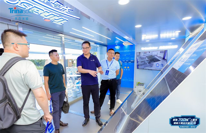在蓝海专列参观环节,至尊N型组件与AI仿生液冷工商储Potentia蓝海2受到众多嘉宾驻足围观。Potentia蓝海2搭载的全栈自产314Ah天合芯,搭载全新天合智慧云平台,大幅缩短用户投资回报周期。天合光能210+N高效组件与Potentia蓝海2的光储产品组合,充分彰显了天合光能卓越的光储技术和创新应用,赋予工商业客户真正高价值光储解决方案。