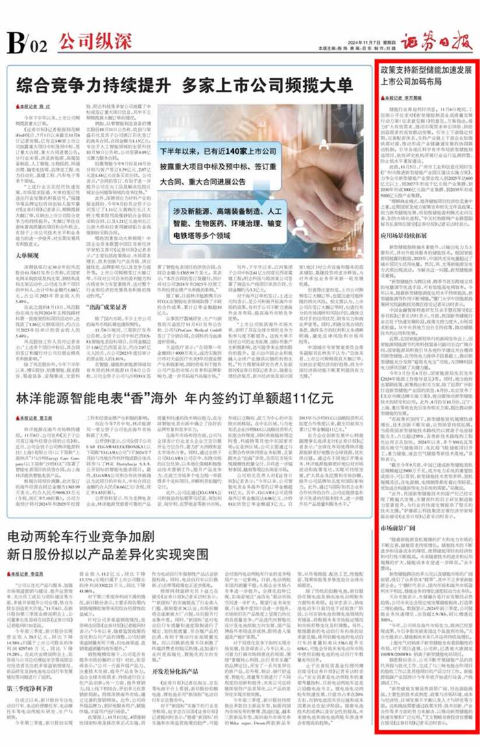 证券日报刊发《政策支持新型储能加速发展 上市公司加码布局》,被转载报道112次。