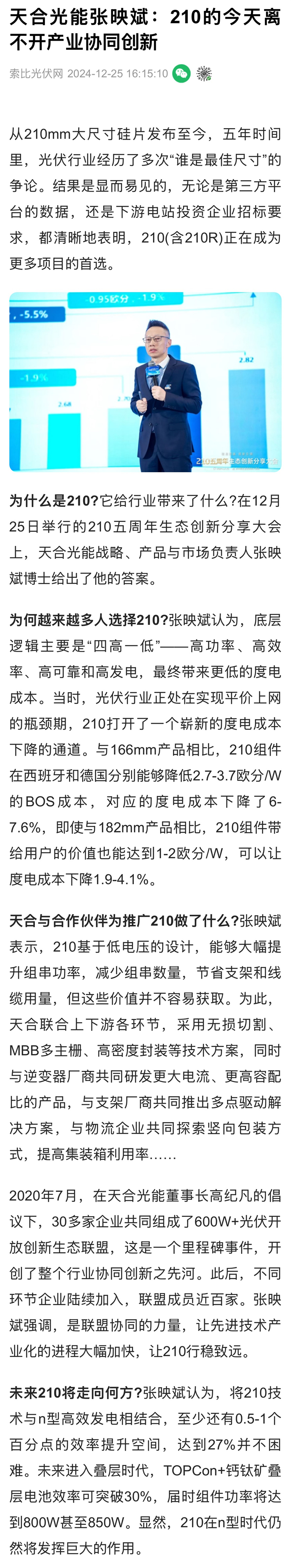 索比光伏网刊发《天合光能张映斌:210的今天离不开产业协同创新》。