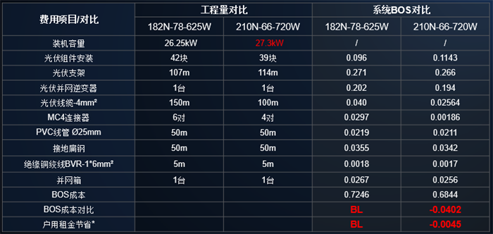 在户用分布式场景下,以河南郑州某户用屋顶测算项目为例,与182N-625W组件相比,至尊N型720W组件在同一户用屋顶装机量提升4%,BOS成本节省约4.02分/W,在新一代超高功率组件中系统价值全面胜出。