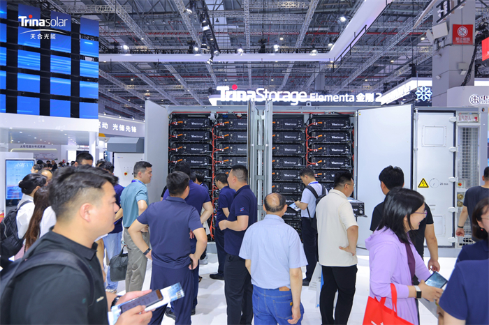作为全球领先的光储智慧能源解决方案提供商,天合光能展示的全场景化解决方案成为现场焦点,引起了现场观众的热烈关注。以大型地面电站的场景为例,至尊N型720W系列和至尊N型625W系列组件具备高功率性能;与之完美适配的开拓者跟踪支架具备设计灵活、快速安装、更易运维、更低发电损失等优势;5MWh新一代柔性液冷电池舱Elementa金刚2搭载314Ah自研天合芯,并于Q2实现全面量产并全球交付,这也是行业为数不多正式交付的5MWh产品。在工商业场景下,本次天合重磅推出全球多元场景的一站式工商业光储融合解决方案。天合光能组件+支架+储能产品强强联合,为终端客户带来更高的发电收益、更低的BOS成本及度电成本。