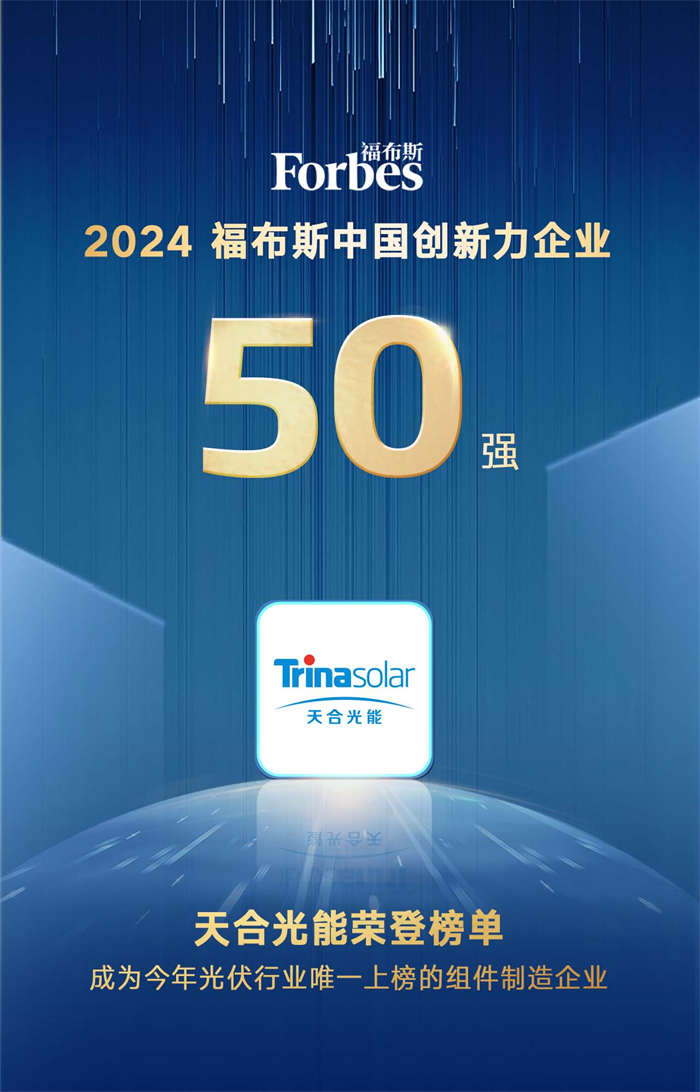 11月13日,2024福布斯中国创新力企业50强榜单发布,天合光能凭借其在新能源领域领先的科技创新、稳健经营以及多元化布局能力再次登榜,成为今年光伏行业唯一上榜的组件制造企业。