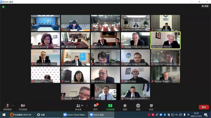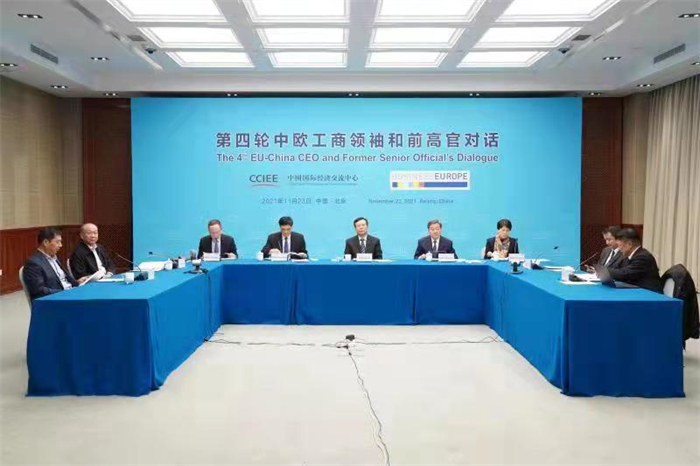 11月23日,第四轮“中国-欧盟工商领袖和前高官对话”以视频会议形式举行,中国国际经济交流中心创始人、国务院原副总理曾培炎致贺信,中国国际经济交流中心常务副理事长、第十三届全国政协经济委员会副主任毕井泉,中国国际经济交流中心常务副理事长兼执行局主任张晓强,欧盟委员会气候行动总司总司长拉斐尔·莫罗·佩特里西奥尼,欧洲企业协会主席皮埃尔·加塔,欧洲企业协会总干事、首席执行官马库斯·布莱耶等出席会议并讲话,中欧领先企业代表出席会议并参与讨论。