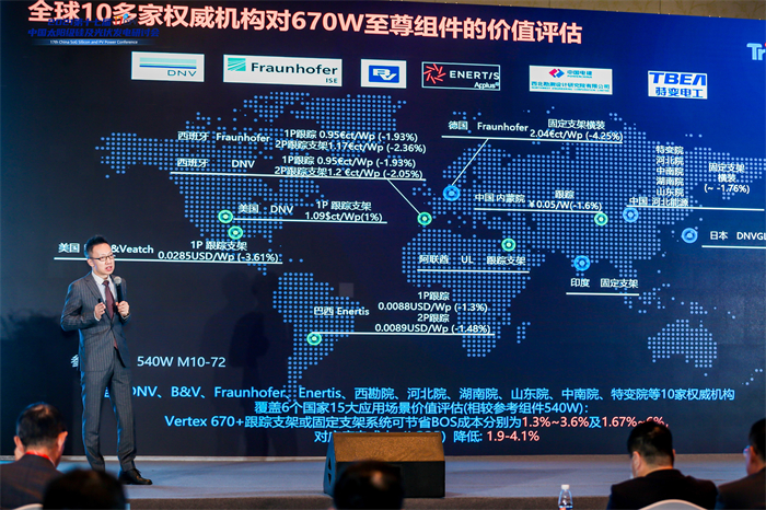 此外,在系统适配性上,已经有14家全球跟踪支架匹配以及21家主流逆变器厂商的210多款产品全面适配至尊系列500W、550W、600W、670W组件。张映斌博士解释,适配性的完美解决,一方面确保组件可靠性能及超高功率组件价值优势的发挥;另外也提升了系统安全及效率,降低系统成本,促进整个高功率产业链高效协同。