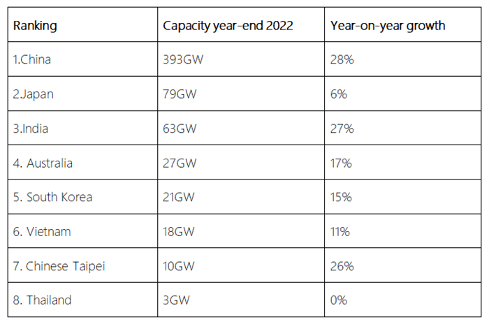 Source: IRENA Renewable Energy Capacity Report for year ending 2022.