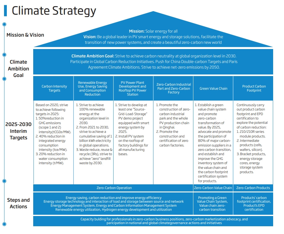 Trina Solar has established a "zero-carbon system" that encompasses the dimensions of "zero-carbon operation - zero-carbon value chain - zero-carbon products", clearly defining its climate ambition of "striving to achieve carbon neutrality at global organization level in 2030", and systematically setting mid-term climate goals for 2025-2030.