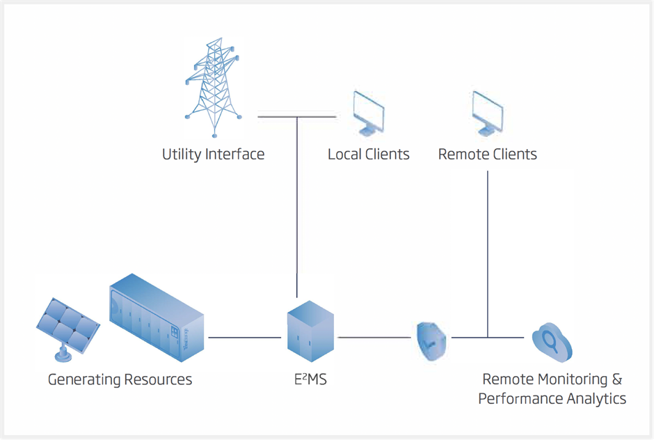E²MS gives visibility and control at all levels of the BESS with the core components including the Plant Controller, Group Controller, Operations & Maintenance tools plus Market Interfaces.