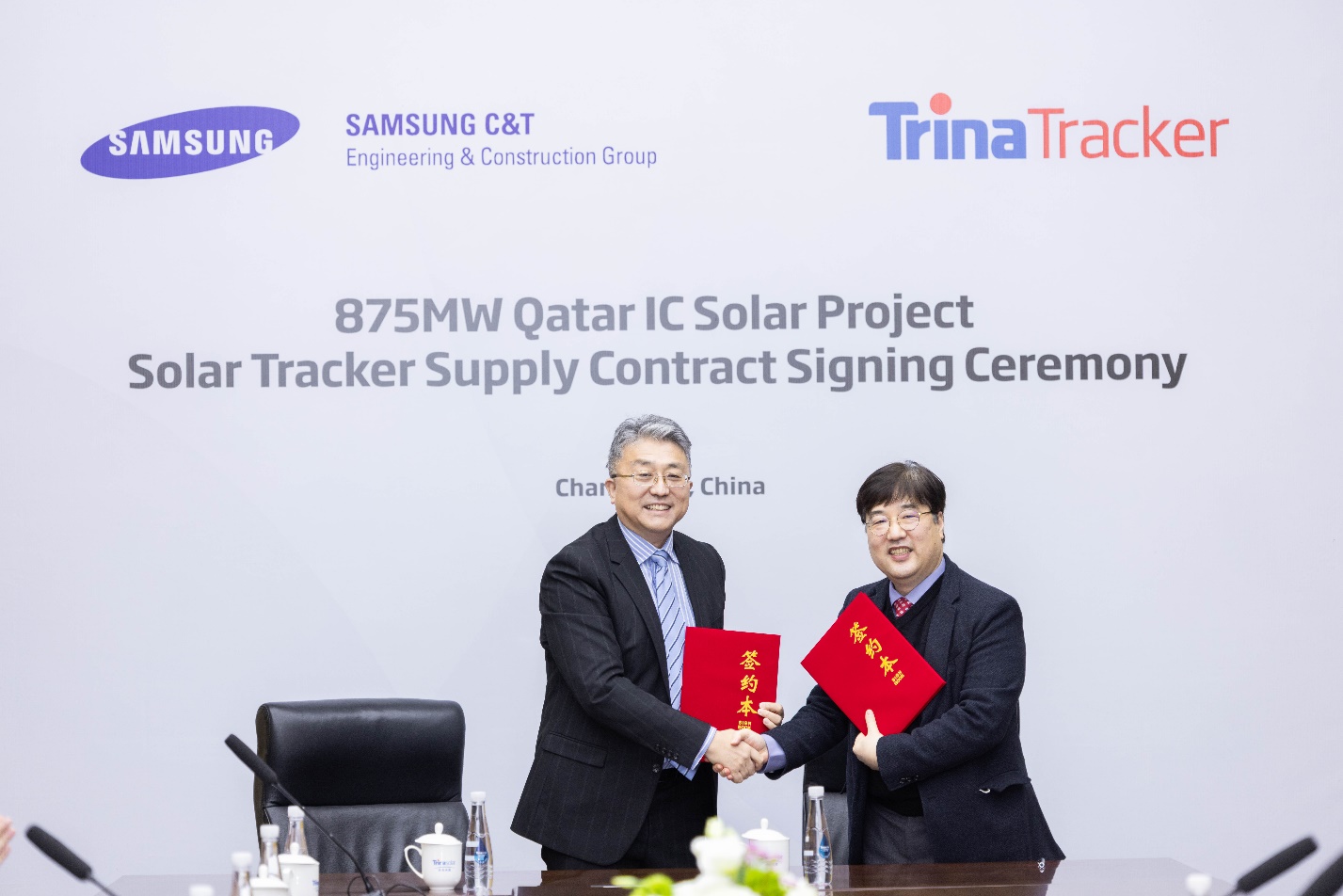 December 16th, Changzhou | TrinaTracker, the global leading smart tracker solution provider, a subsidiary of Trina Solar has signed an 875MW solar tracker supply contract with Samsung C&T (SSCT), for Qatar’s largest solar plant — the industrial cities solar power project (IC Solar).