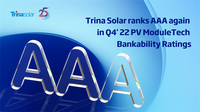 Dubai, UAE – 10 January, 2023: Trina Solar has maintained its AAA status for the third consecutive quarter in the PV ModuleTech bankability rankings released by PV Tech for Q4 2022.