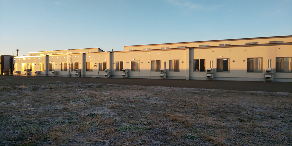 青森市の中心部から西へおよそ20km。日本海側に開けた津軽平野の一画に、社会福祉法人拓心会が運営する住宅型有料老人ホーム「アミスタ五所川原」が建つ。延べ面積1859m2の平屋建て木造建物は、ZEB(ネット・ゼロ・エネルギー・ビル)シリーズの「ZEB Ready」に該当する。