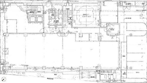 建物は南北に細長く、南面がやや西側に触れた長方形平面となっている。テナントのオフィススペースが建物の西側を占め、北側の正面玄関から東側外壁に沿ってエレベーターや廊下などの共用部が延びる。通用口のある東南の角には立体駐車場が設けられている。