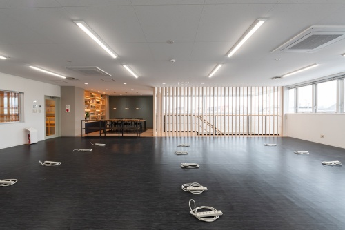 空調と換気設備には全熱交換器やCO2センサーを導入して負荷を減らし、LED照明には照度センサーを導入するなどして設備機器の効率化を図った。