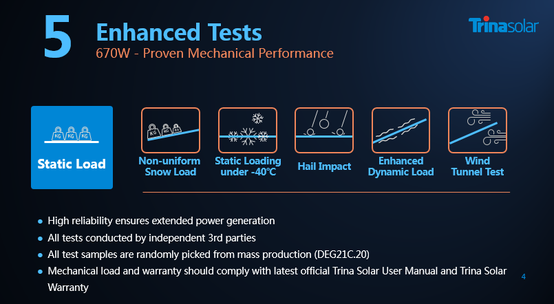 Gao Lei, Global Module Product Senior Manager at Trina Solar, presented in-depth analysis on the reliability of 670W Vertex modules. These modules have passed six mechanical loading tests verifying with excellent mechanical load capability and reliability. In the rigorous tests that simulate extreme weather conditions such as extreme wind, snowstorm, extreme cold and hail, 670W Vertex modules have performed far above IEC standard.
